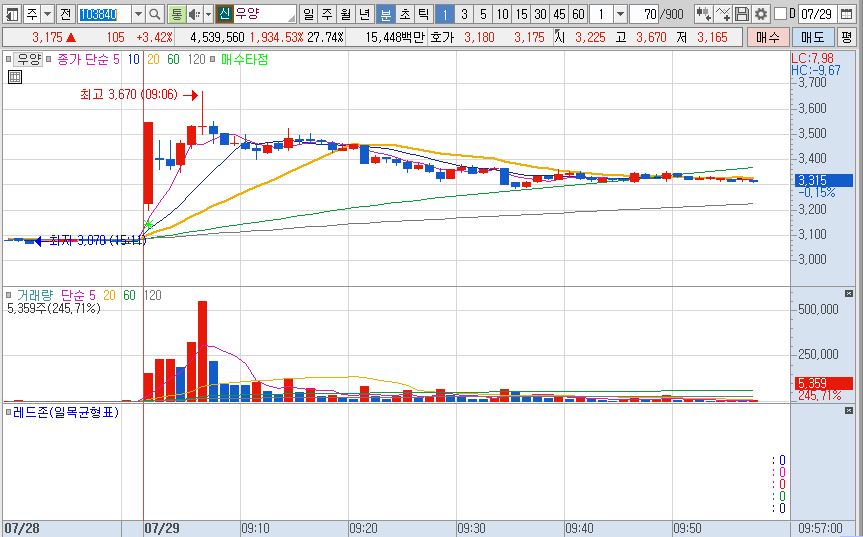 1. 우양: 급락 앞에 무너진 지정가 손절