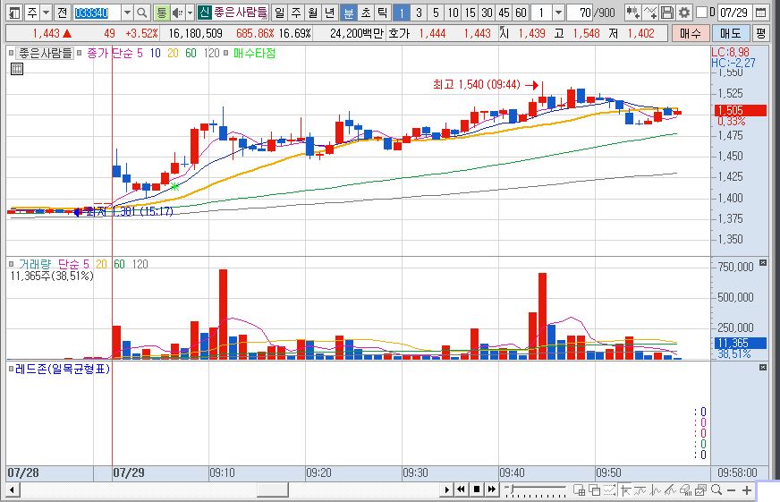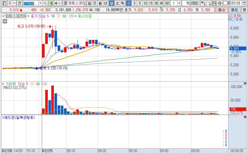 급등 뒤 급락. 매수 직후 매도세가 몰리며 지정가 손절이 체결되지 않았고, 주가는 순식간에 하락했습니다.