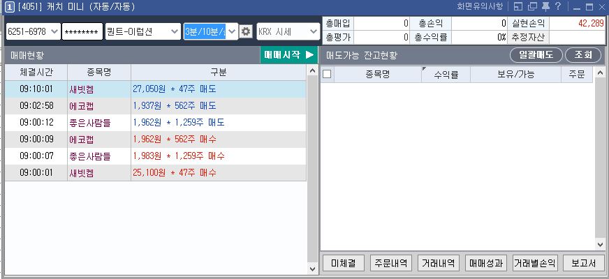 오늘의 모든 매매는 우리가 설정한 '매수 3분, 청산 10분' 이라는 교전 수칙 안에서 이루어졌습니다.