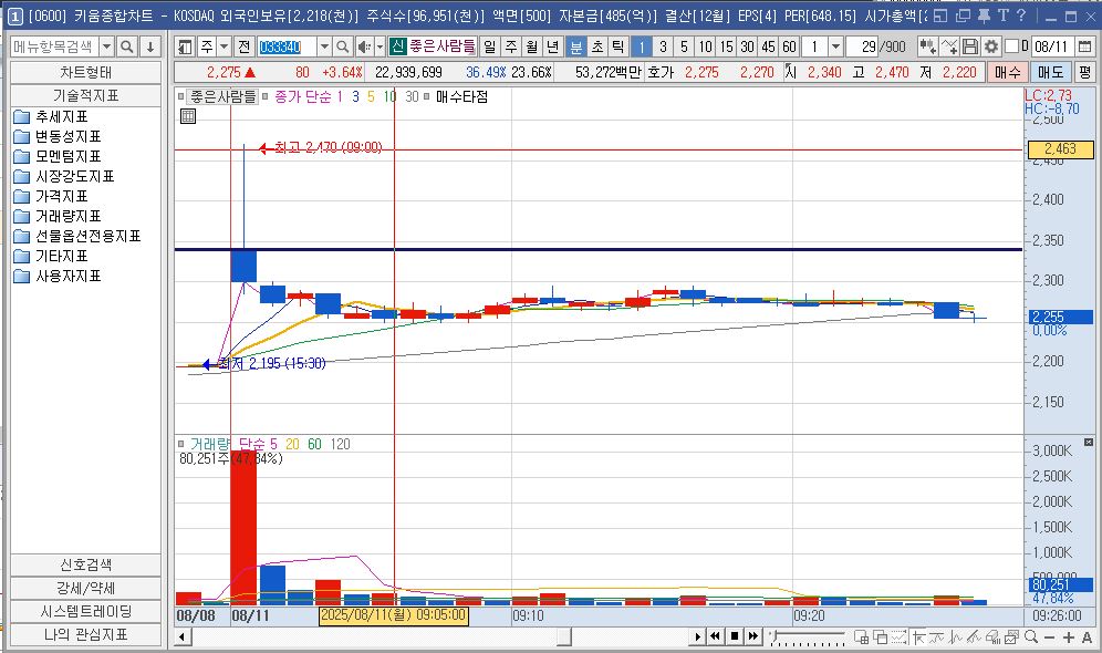 좋은사람들 1분봉 차트