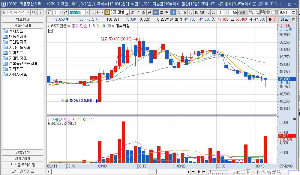GS피앤엘 1분봉 차트