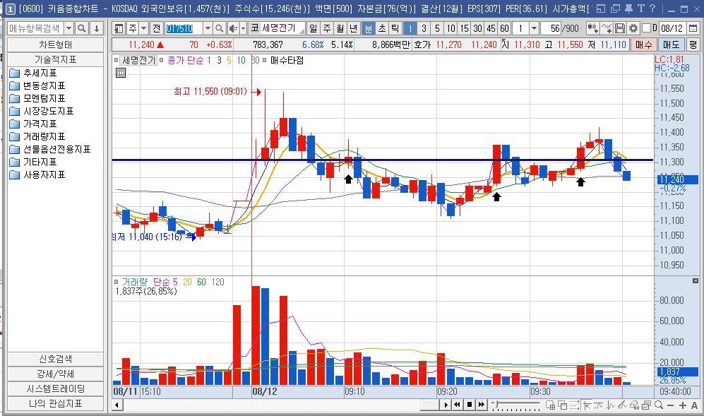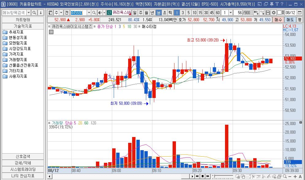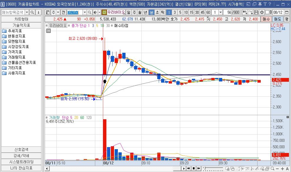 장 시작(09:00)과 동시에 강력한 급등 → 시스템 진입 → 그리고 거짓말처럼 이어진 급락.