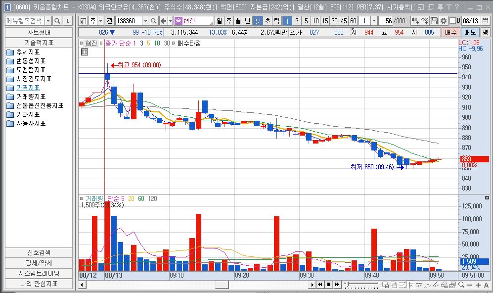 패턴이 보이십니까? 너무나도 소름 돋게 똑같습니다. 장 시작(09:00)과 동시에 강력한 급등 → 시스템 진입 → 그리고 거짓말처럼 이어진 급락.