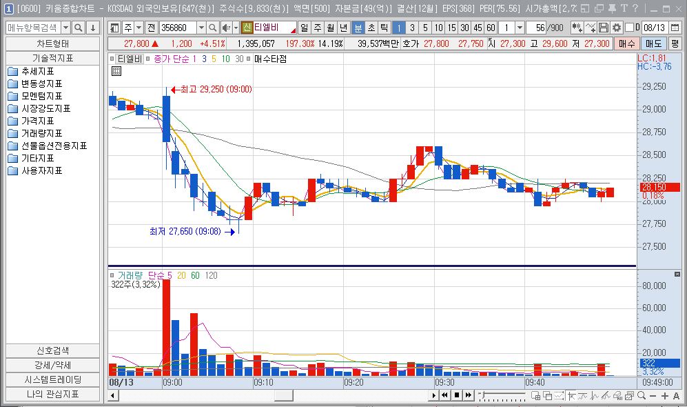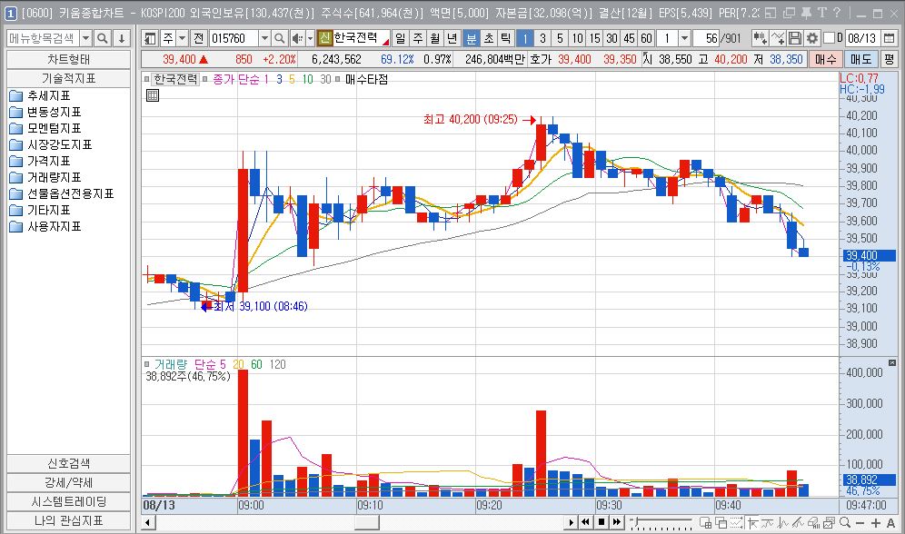 티엘비 1분봉 차트한국전력 1분봉 차트