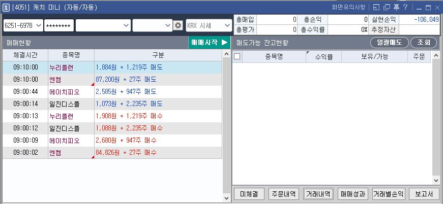 하지만 HTS의 실현손익 창에 찍힌 -106,049원이라는 숫자는, 그 작은 승리를 비웃기라도 하듯 선명하게 빛나고 있었습니다. 이겨도 이긴 것이 아니었습니다. 오히려 작은 승리가 있었기에, 오늘의 패배는 더욱 뼈아프게 다가옵니다.