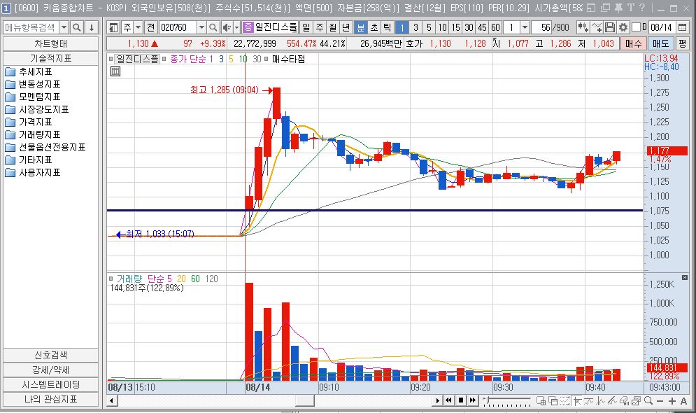 장 시작과 동시에 강력한 급등 → 시스템 진입 → 그리고 거짓말처럼 이어진 급락.
