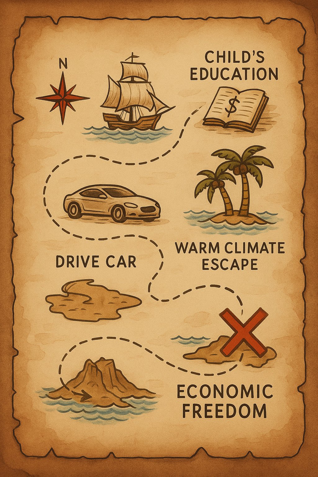 지금 당장 종이와 펜을 꺼내어 당신의 마음속 깊은 곳에 있는 진정한 '꿈'들을 적어보십시오. 그리고 그 꿈을 이루기 위해 필요한 시간과 자금이 얼마나 되는지 구체적으로 계산해보십시오. 이것이 바로 당신만의 **'보물 지도'**를 그리는 첫 번째 단계입니다.