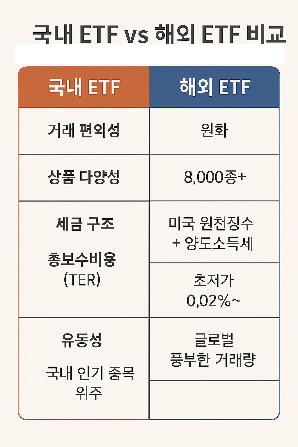 🇰🇷 국내 ETF vs 🇺🇸 해외 ETF 비교
