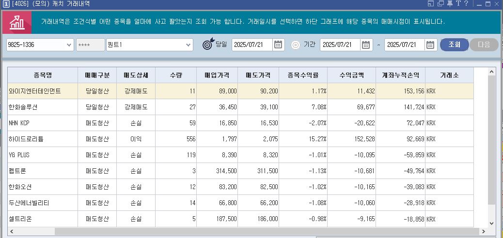7월 21일 매매일지: 키움 캐치 자동매매,15% 수익의 기쁨