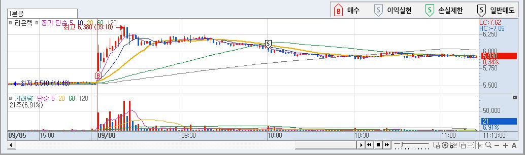 라온텍 1 분봉차트