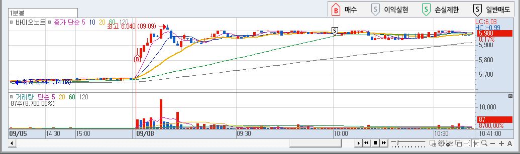 바이오노트 1 분봉차트