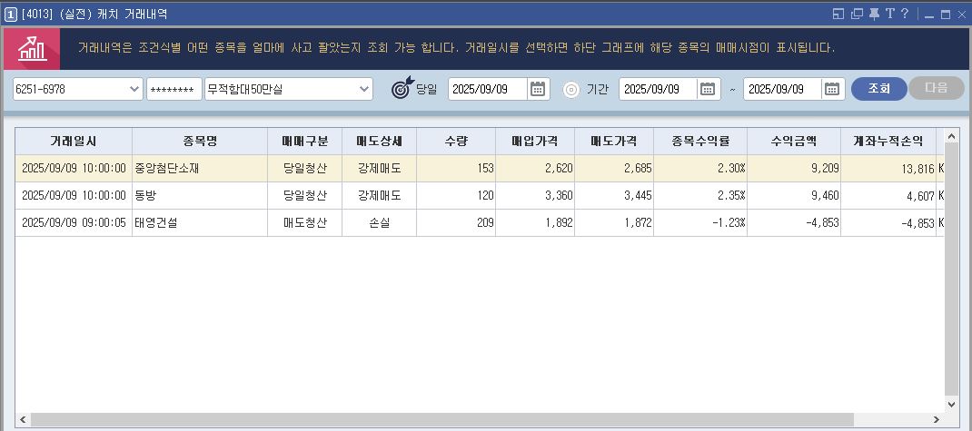 | [실전 24일차] 자동매매일지 화인베스틸, 씨피시스템, 엑셈 손절 복기 (소액 계좌, 원칙 준수) (0) | 2025.09.11 |