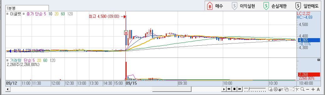 - 이글벳: 매수 4,455 → 매도 4,409 = -1.21%