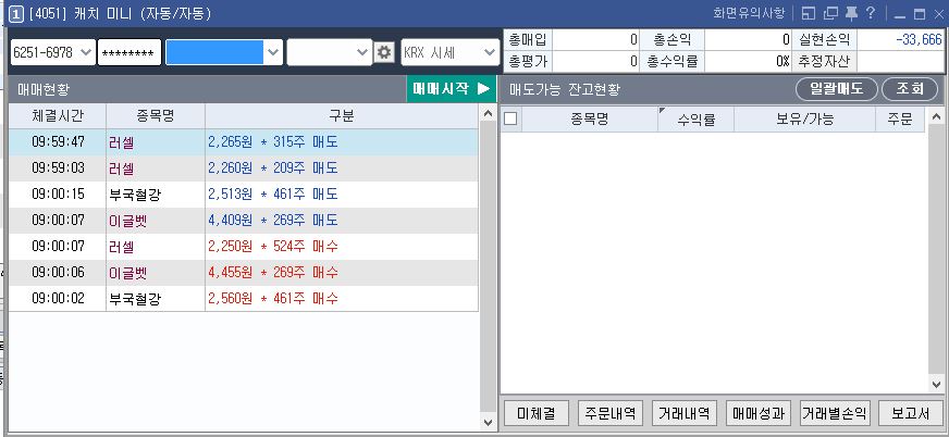 #자동매매일지 #주식단타 #조건검색식 #러셀 #부국철강 #이글벳 #슬리피지 #체결가 #소액계좌 #주식매매복기