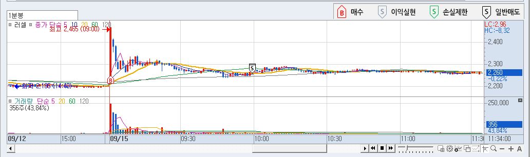 - 러셀: 매수 2,250 → 매도 2,263 = +0.4%