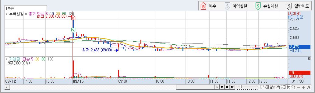 - 부국철강: 매수 2,560 → 매도 2,513 = -2.03%